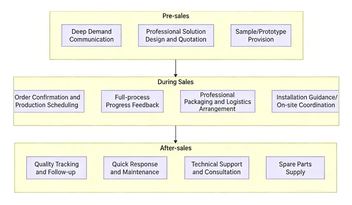 Innan samarbetet kommer en dedikerad YeHaoXuan-konsult att tillhandahålla en-till-en-tjänst, noggrant bedöma dina behov, tillhandahålla skräddarsydda lösningar och transparent prissättning och erbjuda exempeldemonstrationer för att hjälpa dig att fatta välgrundade beslut.